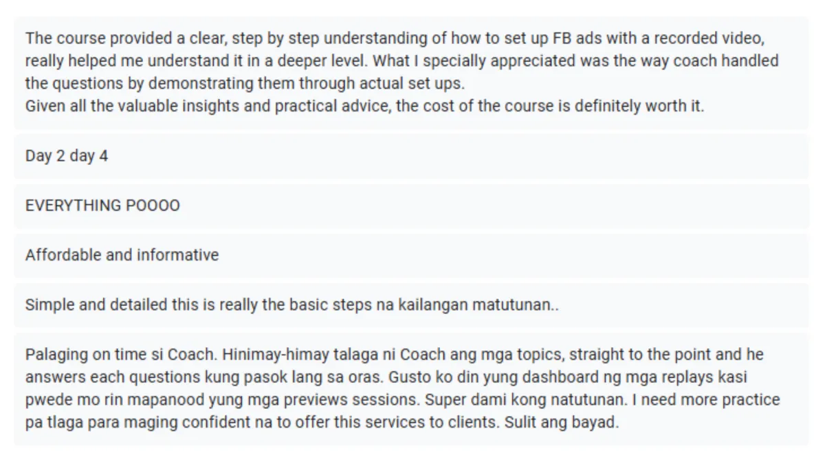 You don't need to spend countless hours figuring it out by yourself! You can ask unlimited questions in the next 5 days! Make sure na sulitin mo yung P499 na binayad mo!